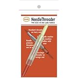 Two sizes of sturdy wire threaders nested in a single handle. The handle is long enough to reach and thread sewing machine needles quickly and easily.