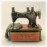 .This exquisite Sewing Machine looks just like your Featherweight! Meticulously hand enameled by our skilled artisans, it features a swath of cloth being sewn. A bobbin has carelessly been left on the sewing table and the drawer is partially "open" to create a whimsical scene. Box is hinged in the back and opens to reveal a compartment for storing your pills, needles, rings or other trinkets.Height: 2 inchesWidth: 2 inchesDelivered in a padded, satin lined, presentation box with a manufacturer's certificate of authenticity.SparklingCollectibles carries over 500 styles of keepsake boxes.